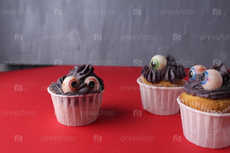 Чудовищные кексы.Еда - это угощение на Хэллоуин.Ужасная и смешная еда