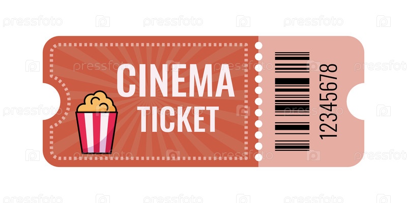 Дизайн билета в кино с иконой попкорна идеально подходит для событий, связанных с фильмом, билетов и рекламы фильмов. Яркий оранжевый фон с винтажным стилем