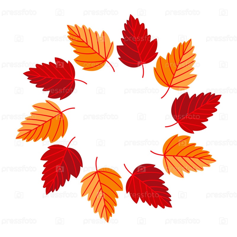 Осенний венок из красных и оранжевых листьев на белом фоне