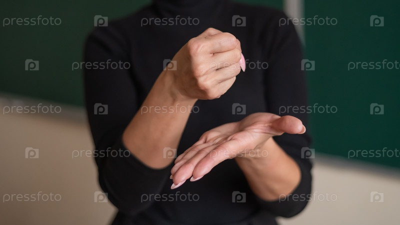 Женщина показывает знак гранта на языке жестов