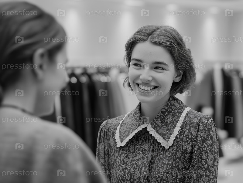 Улыбающаяся девушка в магазине одежды