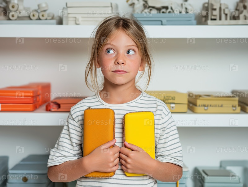 Девушка хранит в магазине два корпуса для красочных карандашей