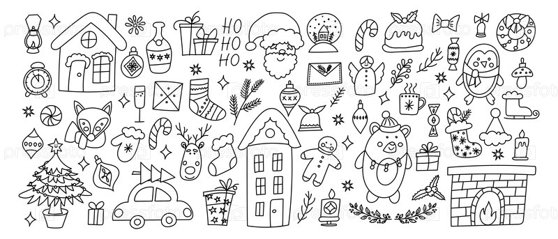Черно-белые рождественские иконы на белом фоне