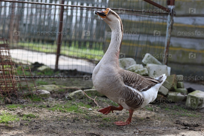 Домашний гусь прогуливается по ферме