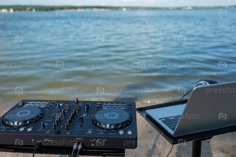 Диджейское оборудование на берегу реки