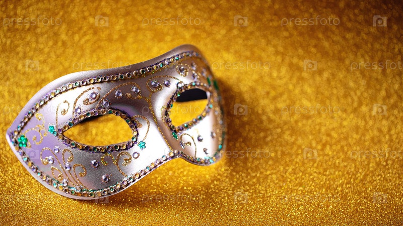 Праздничная, красочная Марди Гра или карнавальная маска на золотом фоне