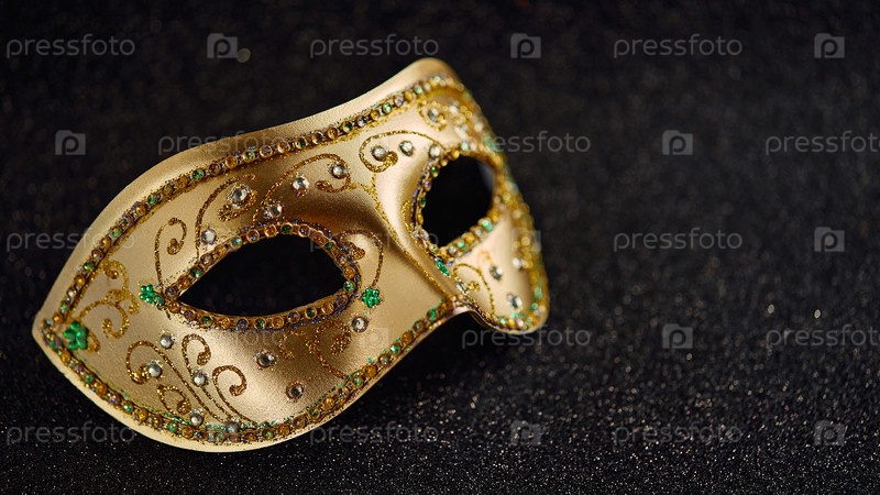 Праздничная, красочная Марди Гра или карнавальная маска на золотом фоне