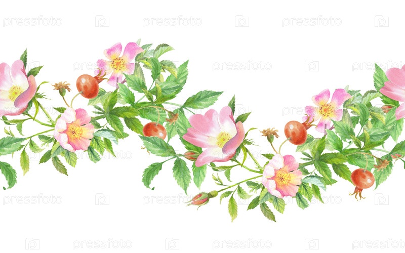 Бесшовная граница розового косточка. Ручное акварельное искусство. Для дизайна упаковки, карт, обложек, принтов, этикеток на продуктах и тканей