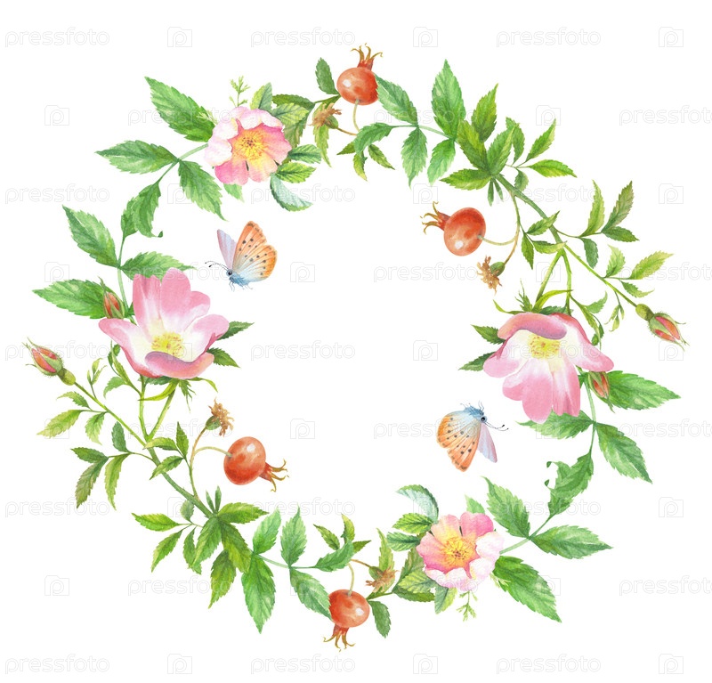 Розовый венок. Ручное акварельное искусство. Для дизайна упаковки, карт, обложек, принтов, этикеток на продуктах и тканей
