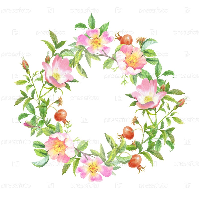 Розовый венок. Ручное акварельное искусство. Для дизайна упаковки, карт, обложек, принтов, этикеток на продуктах и тканей