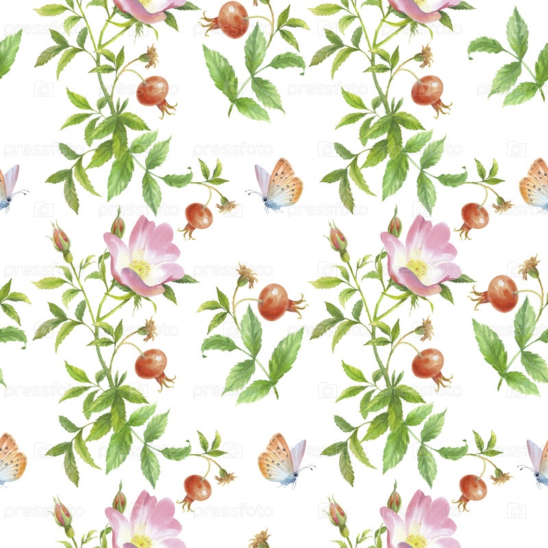 Бесшовный рисунок розы и бабочки. Ручное акварельное искусство. Для дизайна упаковки, карт, обложек, принтов, этикеток на продуктах и тканей