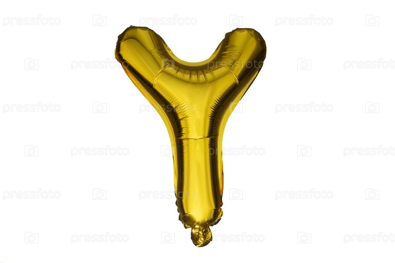 Золотая надувная буква Y выделена на белом фоне