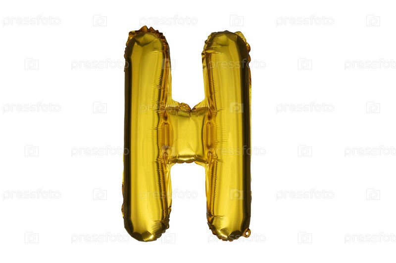 Золотая надувная буква H выделена на белом фоне