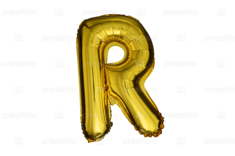 Золотая надувная буква R выделена на белом фоне