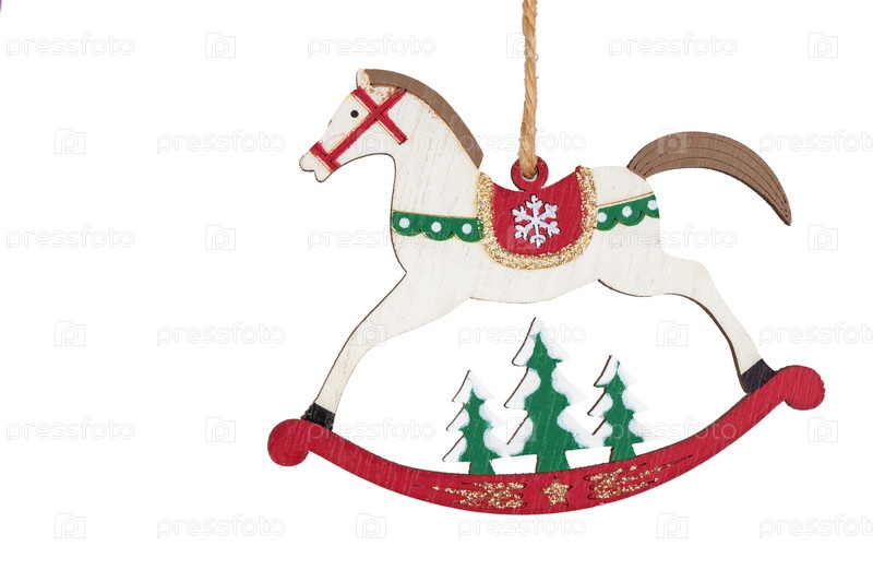 Деревянная игрушечная лошадь Рождественская игрушка на белом фоне