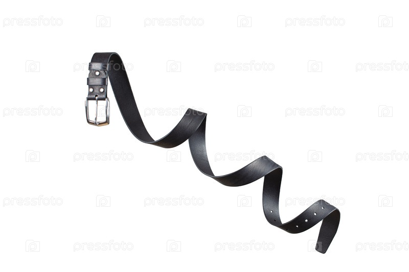 Черный кожаный пояс скручен и изолирован на белом фоне