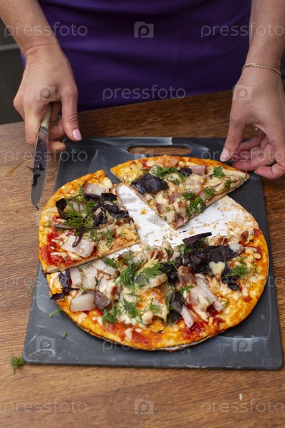Перережьте пиццу на куши