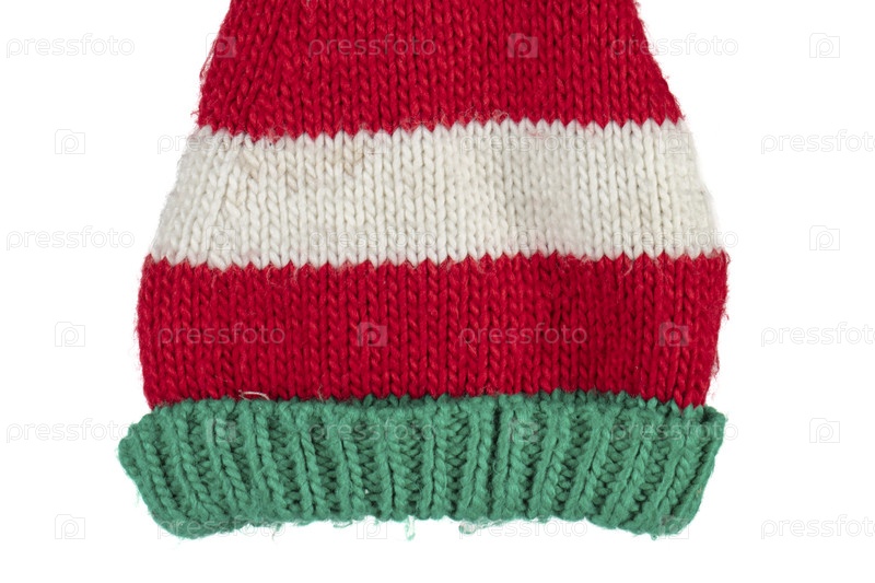 Часть вязаной рождественской шляпы на белом фоне