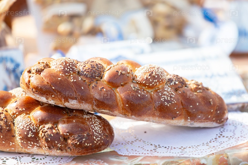 Прекрасный плетеновый хлеб с семенами кунжута. Хороший урожай зерна