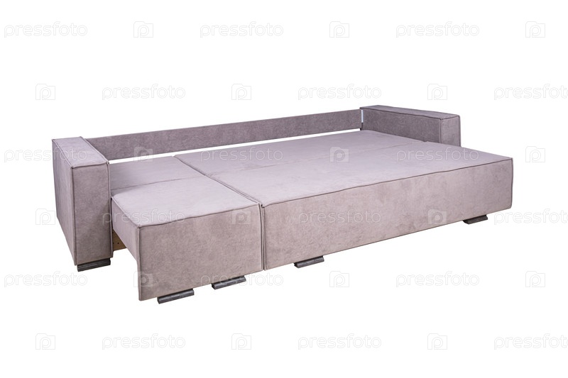 Розовый развернутый диван из соломенной ткани, изолированный на белом фоне