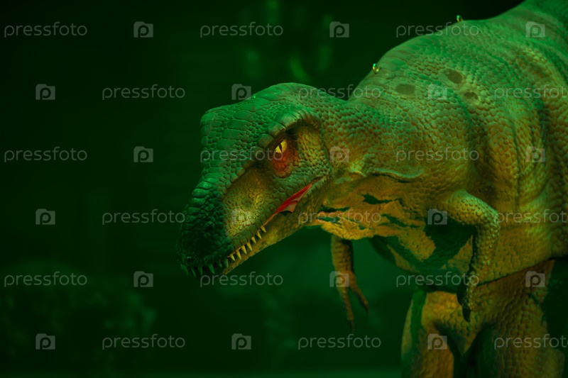 Зеленый доисторический манекен динозавра в мистическом свете