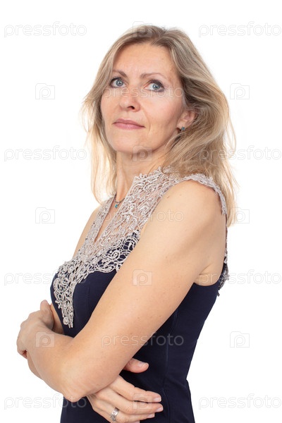 Портрет красивой пожилой женщины с блондинками.Женщина в пятьдесят лет