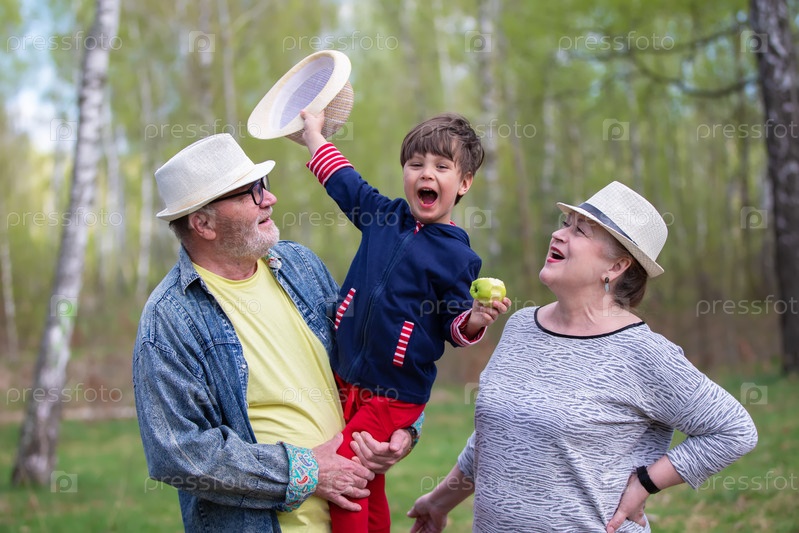 Бабушки, дедушки и внуки веселятся на улице