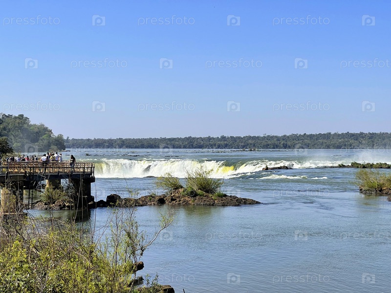 Река Игуасу, место, где начинает падать водопад, дьявольское горло, Аргентина