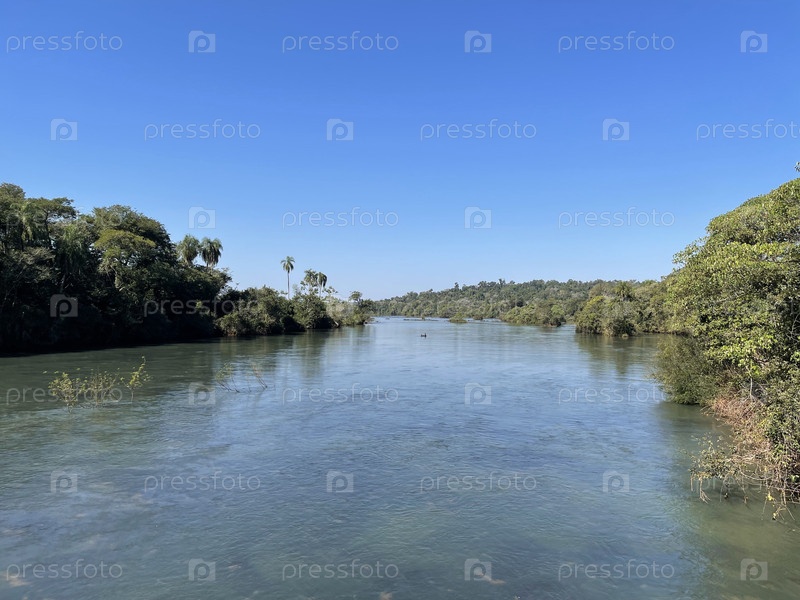 Река Игуасу возле обвала в виде водопадов, Аргентина