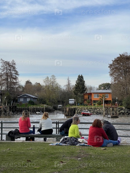 30 июля 2023 года - Тигр, Аргентина: люди сидят на берегу реки в городе Тигрис