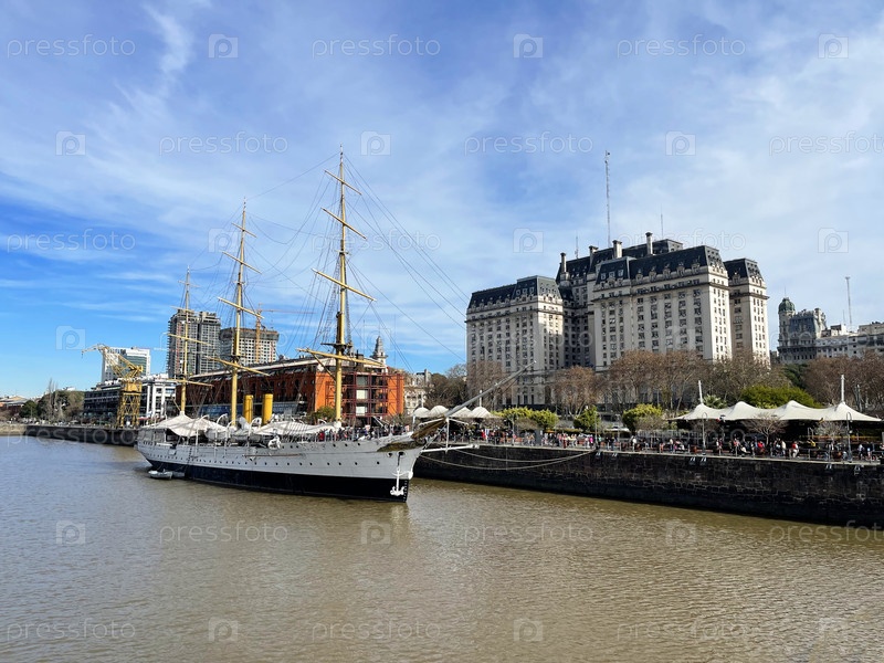 29 июля 2023 года - Буэнос-Айрес, Аргентина: туристическое парусное судно в городской зоне Пуэрто-Мадеро, Буэнос-Айрес, Аргентина