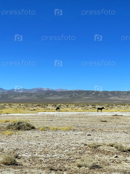 Осли пасутся в Андах недалеко от Салинас-Грандес, провинция Джуджуй, Аргентина
