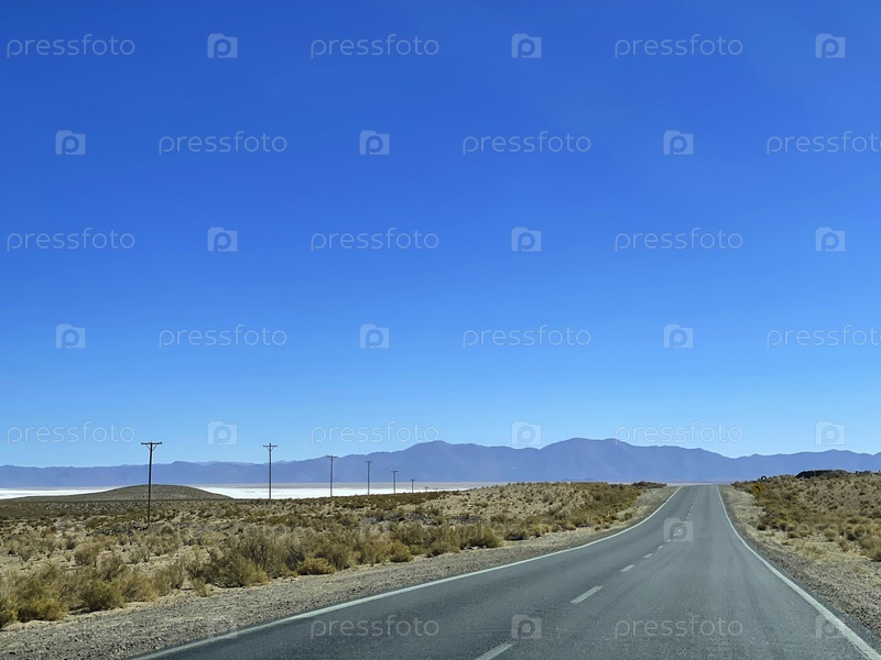 Пустая дорога, ведущая к соляной равнине Salinas Grandes, Jujuy, Аргентина