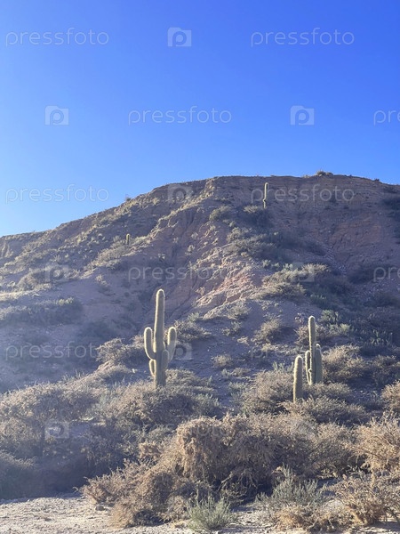 Гигантские кактусы растут на склонах Анд в провинции Джуджуй, Аргентина