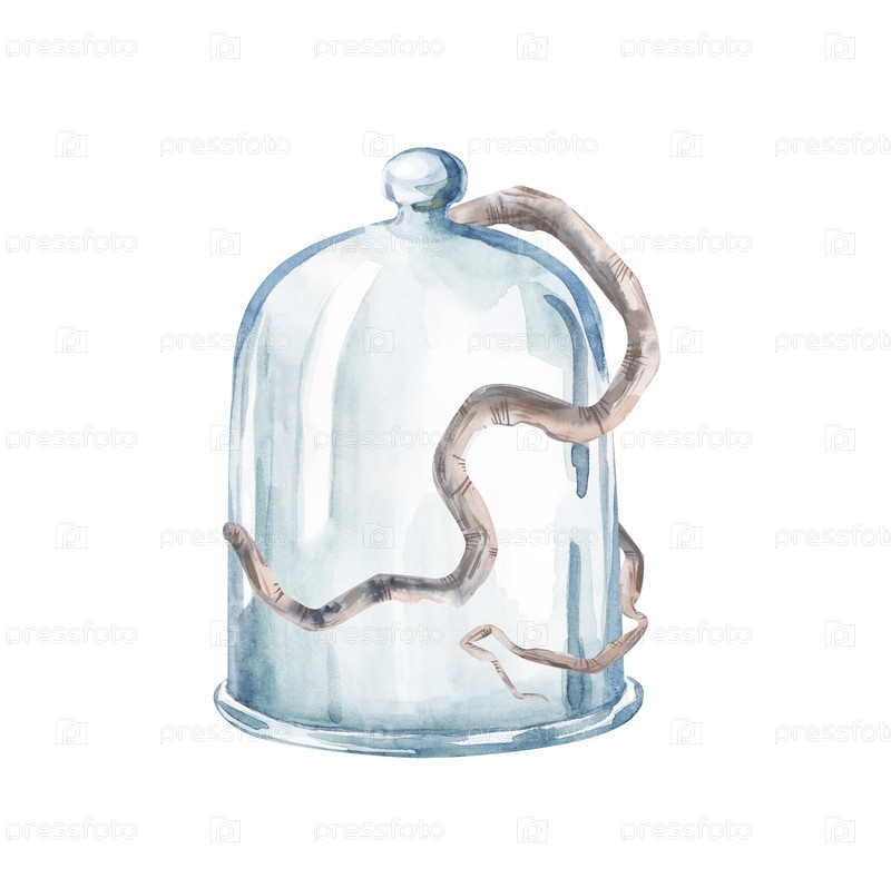 Стеклянный купол, переплетенный с корнями деревьев, написан вручную на белом фоне. Иллюстрация акварели изолирована. Узоры Хэллоуина или пугающие сказочные проекты. Колдовство. клипарт
