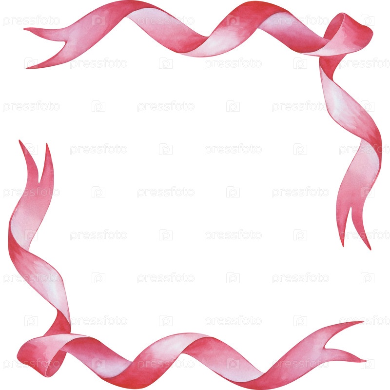 Акварельная рама из украшенных розовых лент, нарисованная вручную.Илюстрация с пустым пространством для вставки изолирована на белом фоне.Шаблоны для поздравительных открыток и приглашений