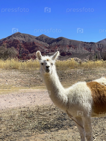 Лама смотрит на камеру в Андах возле Пурмамарки, Джуджуй, Аргентина