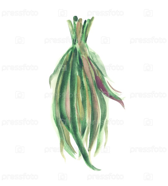Зеленый кусок травы высушен в суспензии. Иллюстрация акварели. Образ растения изолирован на белом фоне. Клиппарт для сельскохозяйственного дизайна, колдовства и традиционной медицины