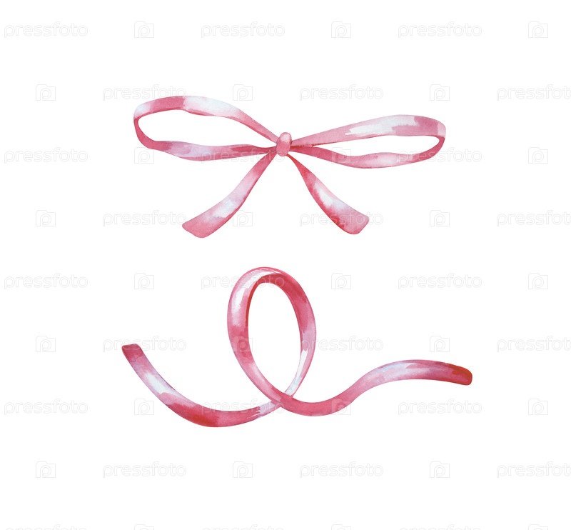 Акварельная розовая лента и ручно нарисованные луки. иллюстрация выделена на белом фоне. праздничный декор