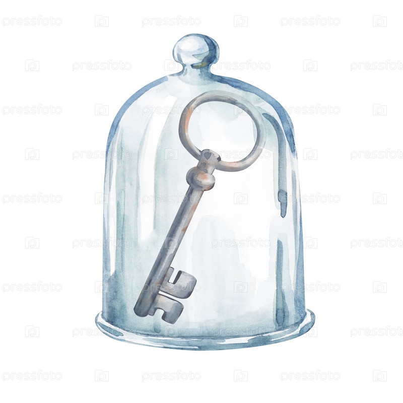 Рукопись акварели ржавый ключ под галочкой. иллюстрация выделена на белом фоне. клипарт. мистицизм. halloween