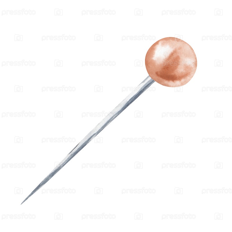 Акварельная иллюстрация красной резкой булавки. Рисунок рабочего инструмента швеи на белом фоне. Швейные аксессуары. Изолированный. Клипарт