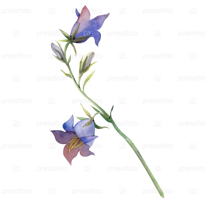Красивый голубой колокол на белом фоне. Ручно нарисованная акварельная иллюстрация диких цветов. Ботаническая иллюстрация выделена на белом фоне. Летняя тема