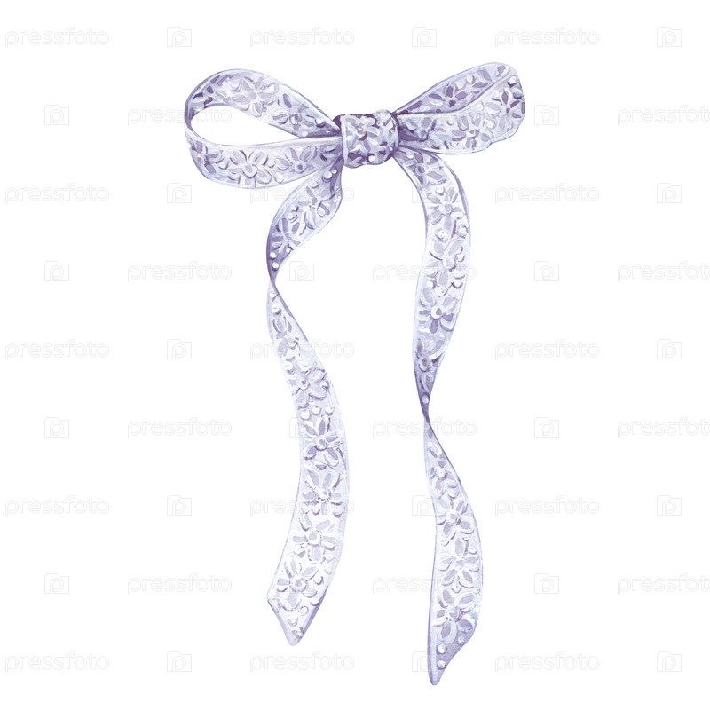 Акварельная кружевная лента на белом фоне. Тонкая белая кружевая пленка, привязанная к луку. Иллюстрация акварели. Изолированный. Для изготовления открыток, приглашений и обоев. Рождественская пряжка