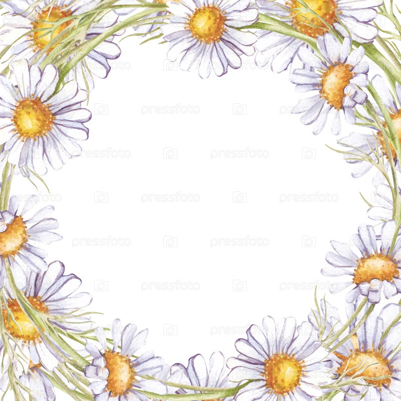Цветочный акварельный квадратный каркас. Белые ромашки на белом фоне. Дикие цветы вплетены в венок. Ботаническая иллюстрация. Шаблон для свадеб, приглашений и открыток