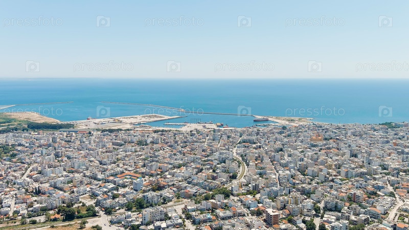 Панорама центральной части города летом Побережье Фракийского моря, вид с воздуха
