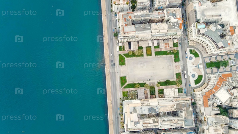 Салоники, Греция Панорама центральной части города Лето, вид с воздуха