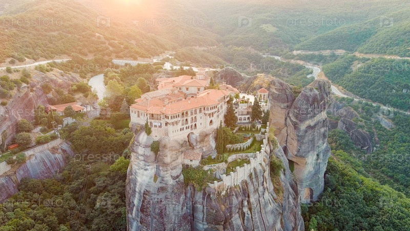 Метеоры - это скалы высотой до 600 метров. ЮНЕСКО перечисляет 6 активных греческих православных монастырей Aerial View