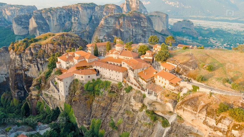 Метеора, Калабака, Греция. монастырь Преображения Спасителя. метеоры - это скалы высотой до 600 метров. ЮНЕСКО перечисляет 6 активных греческих православных монастырей Посмотреть с воздуха