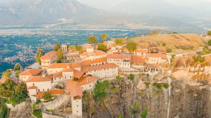 Метеора, Калабака, Греция. монастырь Преображения Спасителя. метеоры - это скалы высотой до 600 метров. ЮНЕСКО перечисляет 6 активных греческих православных монастырей Посмотреть с воздуха