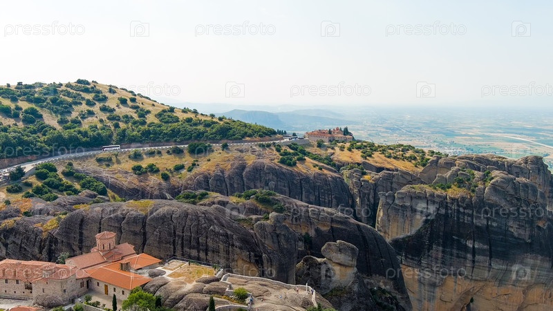 Метеора, Калабака, Греция. монастырь святого Стефана. метеоры - это скалы высотой до 600 метров. ЮНЕСКО перечисляет 6 активных греческих православных монастырей Aerial View